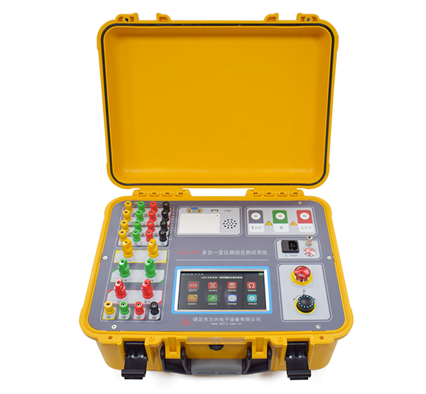 該儀器為大容量鋰電池供電的五合一配電變壓器測(cè)試系統(tǒng)(直阻+變比+絕緣電阻+能效等級(jí)+回路電阻),僅需要一套設(shè)備,可以完成五個(gè)項(xiàng)目的測(cè)試,不需要頻繁的拆接測(cè)試線(xiàn)。