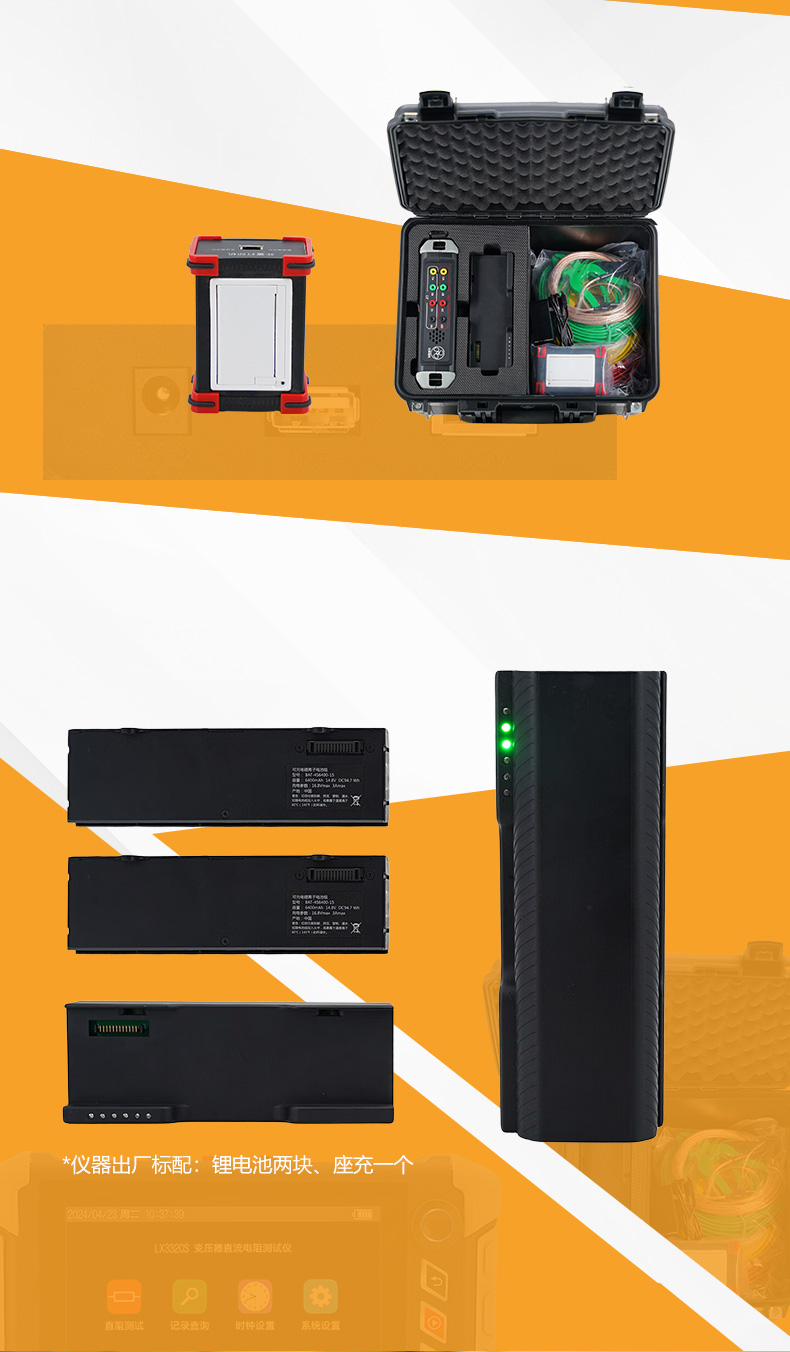 1、鋰電池供電,且電池可更換,并可選配多塊電池與電池座充,滿足現(xiàn)場連續(xù)測試。